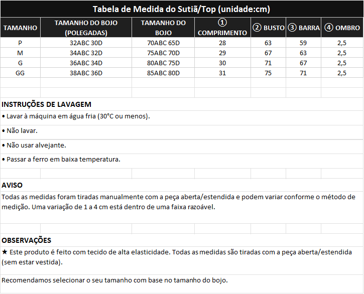 O tecido Ć© encorpado e liso. Para acabamento perfeito, use lingerie sem costura (ou nude).