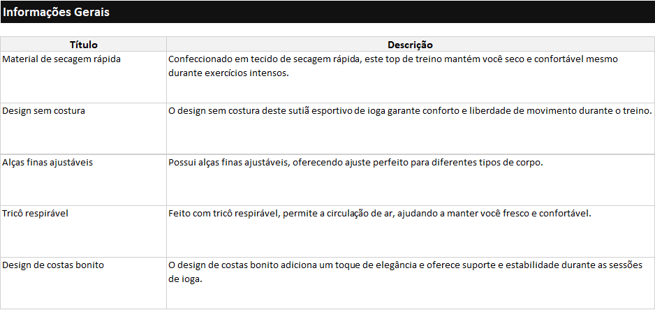 🖤 Alças ajustáveis: encaixe perfeito e movimento irrestrito